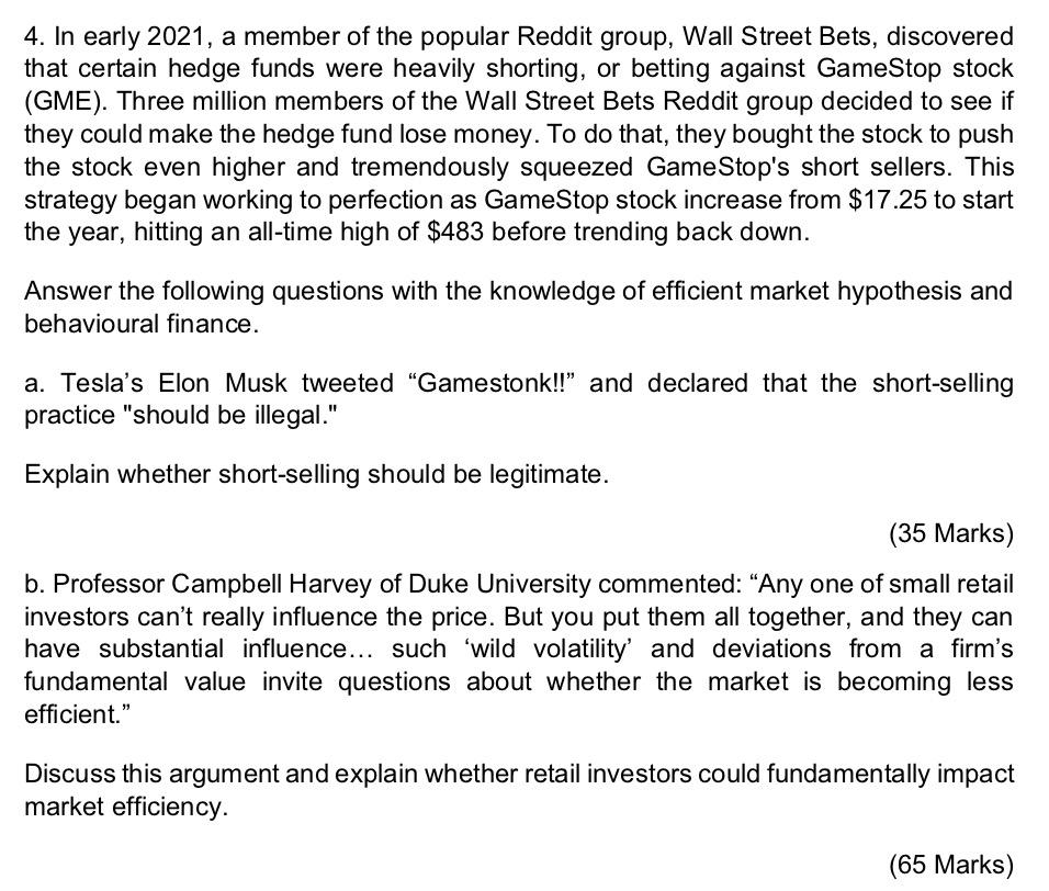 Solved 4 In Early 2021 A Member Of The Popular Reddit Chegg Com
